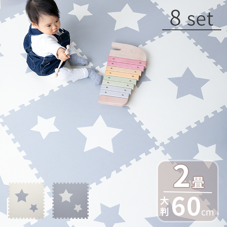 ジョイントマット 大判 おしゃれ 赤ちゃん 60cm 2畳 星型 マット 8枚 ラグ プレイマット 防音 防水 床 子供 スター パズルマット フロアマット 敷物 ベビー