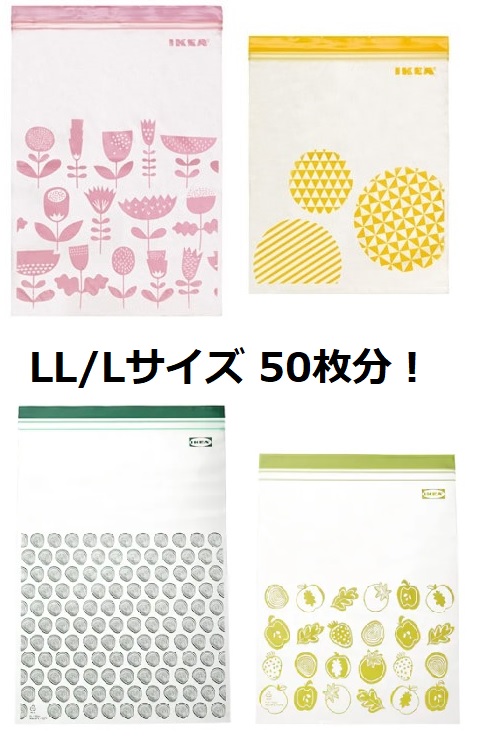 IKEA ISTAD(L) 大サイズ 特大サイズ 4種類 50枚 ジップロック フードキーパー フリーザーバッグ プラスチック袋 食品保存袋 Lサイズ LLサイズ イースタード