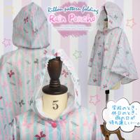 レインポンチョ リボン柄 おしゃれ S(80~90cm) M(90~100cm) メール便可 雨具 水色 かわいい リボン柄レインポンチョ 自転車 arisana 子供用レインコート、レインハット ガールズ 幼稚園 雨合羽 ジュニアレインコート 収納袋 林間学校 通学