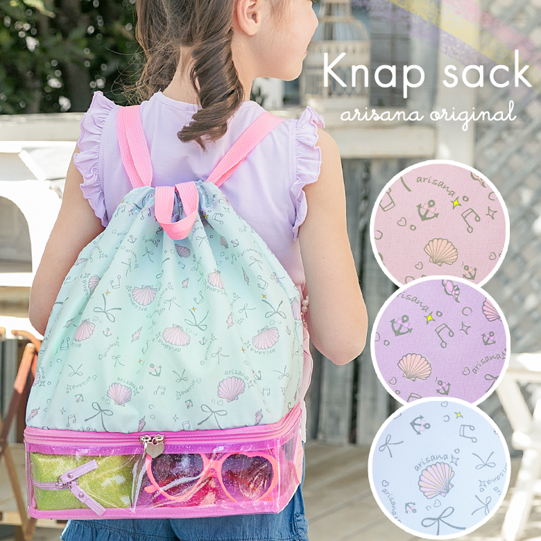 2層 リュック おしゃれ 女ナップサック 二層式 二重底 貝殻柄 メール便可 プール 水泳 スイミング ナップサック [スイムバッグ スイミングバッグ クリア サマーバッグ 2層式 2ルーム 2段 ファスナー かわいい 大きい 大きいサイズ 小学生 低学年 高学年 ジュニア 保育園 幼稚園 透けない 丈夫 プリンセス パープル ラベンダー 紫 ミント 水色 ブルー リボン ナップザック(子ども用)]