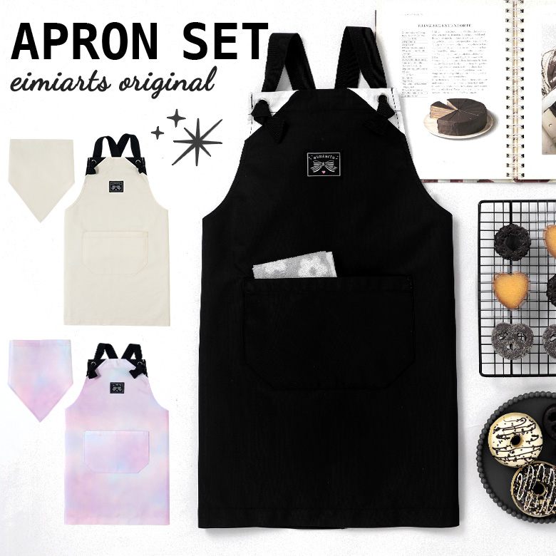 エプロンは首まわりの長さを調整できるゴムが入っています。