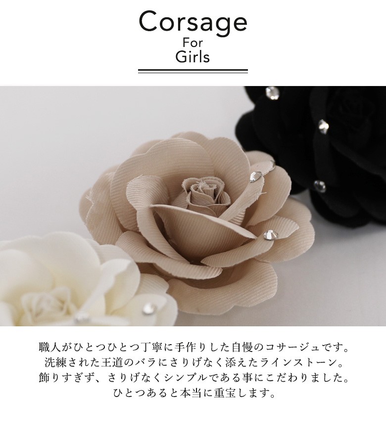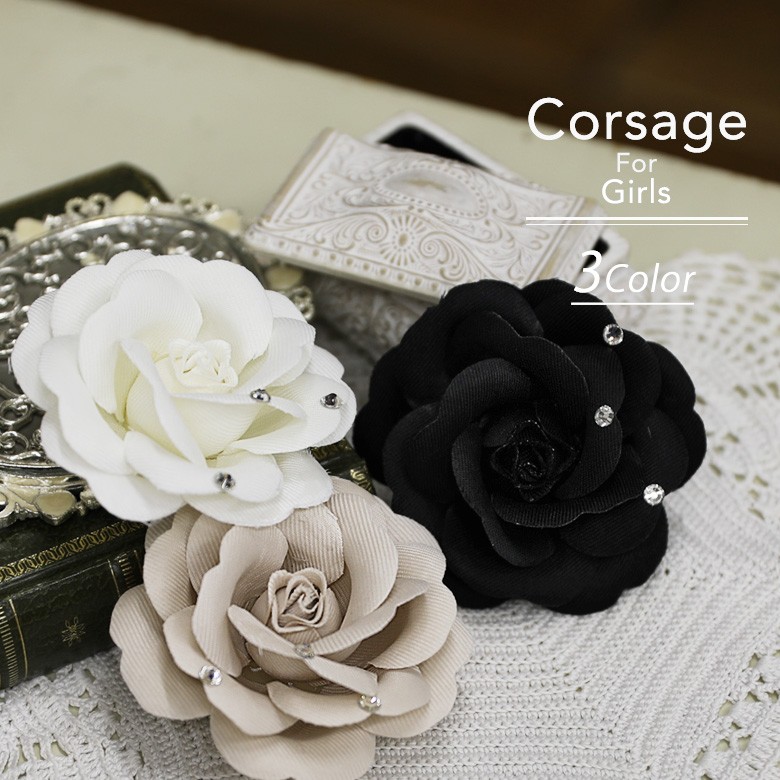 [ コサージュ 約9cm 薔薇 ラインストーン装飾 レディース ママ キッズ ジュニア 子供 女の子 入学式 卒業式 入園式 卒園式 入学 卒業 定番 子供ドレス arisana ホワイト ブラック ベージュ 子ども用コサージュ、フォーマル小物 卒業式 おしゃれ ]