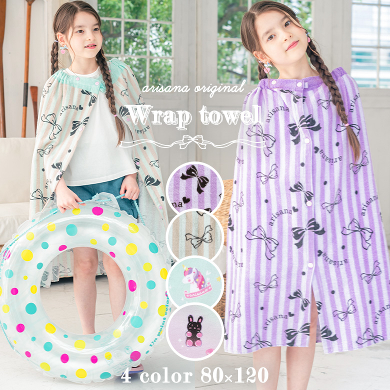 女の子 子ども プール タオル 着替えタオル 貝殻 ユニコーン リボン 水泳 スイミング [ バスタオル ジュニア 小学生 女 女子 女児 こども 子供用 かわいい プリンセス ラベンダー パープル ミント 水色 アリサナ スイムタオル、ラップタオル(子ども用) ]