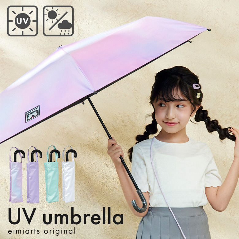 晴雨兼用UV折りたたみ傘♪お名前タグ付/低〜中学年サイズ 子ども傘 [グラデーション ラベンダー パープル ミント ホワイト スクール おしゃれ 安全 可愛い かわいい ]