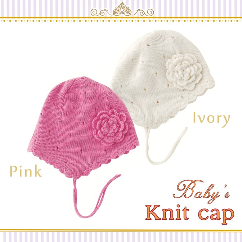 ☆お花のベビーニット帽☆お花のアクセントがコーディネイトのポイントに♪かぶるだけで、乙女度アップ♪アクセサリーみたいに可愛いニット帽ですコーディネイトのポイントにしてくださいねちょっとしたプレゼントにも喜ばれますよ♪