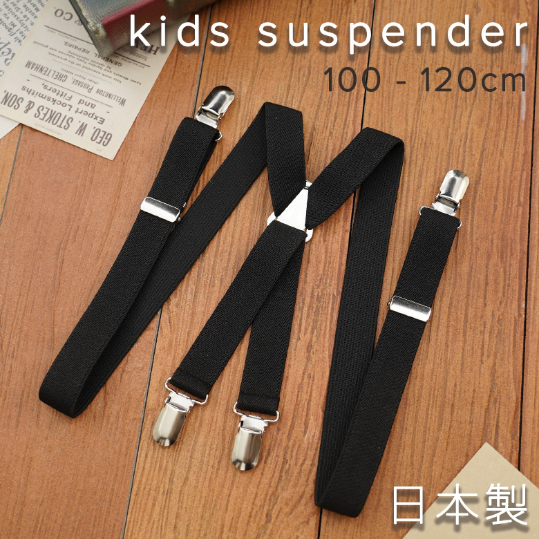日本製 サスペンダー キッズ 子供 子供用サスペンダー X型 入学式 卒園式 フォーマル ブラック調整可能