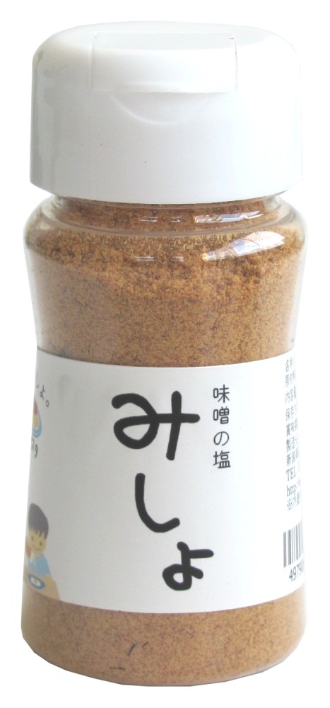 味噌を乾燥して粉末タイプにしました。その名は「みしょ」。パスタやおにぎり、ピザやお刺身など、いろいろなお料理にふりかけてお召し上がりください。