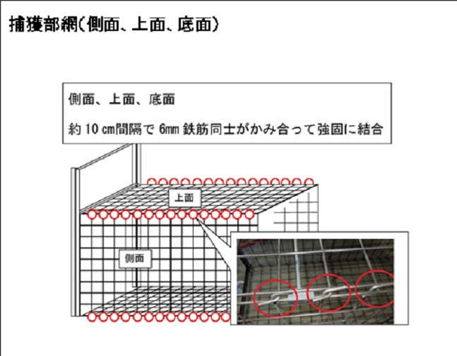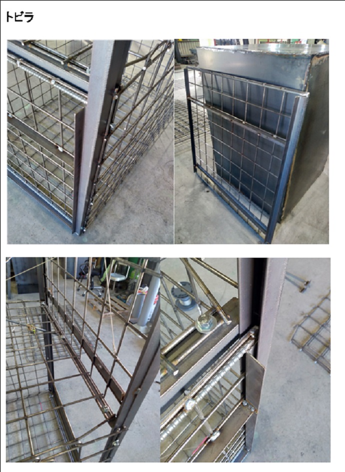 ・6mmメッシュをベースに10mm鉄筋で枠を作り、さらに30mmアングルでも内枠を形成しています。