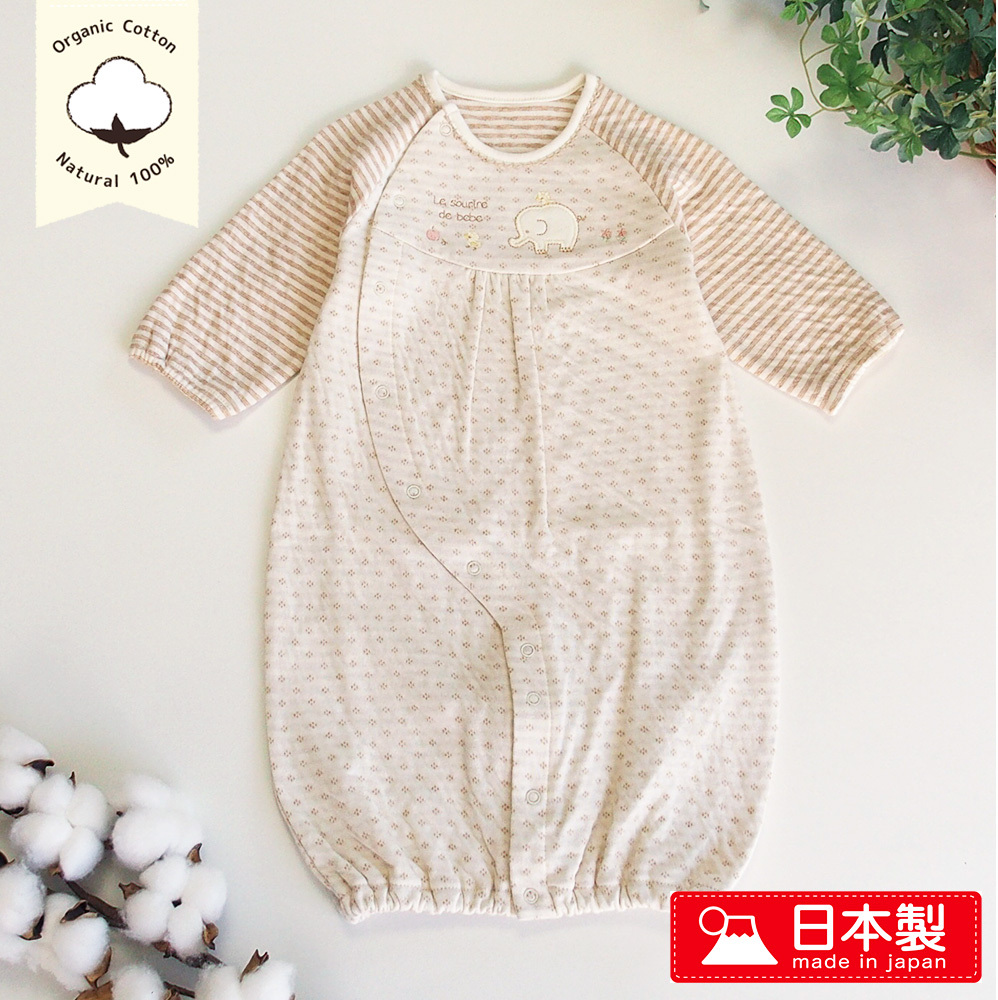 日本製 オーガニックコットン ぞうさん ツーウェイオール 兼用ドレス OP mini 新生児赤ちゃん用 男の子 女の子 男女兼用デザイン ゾウさん