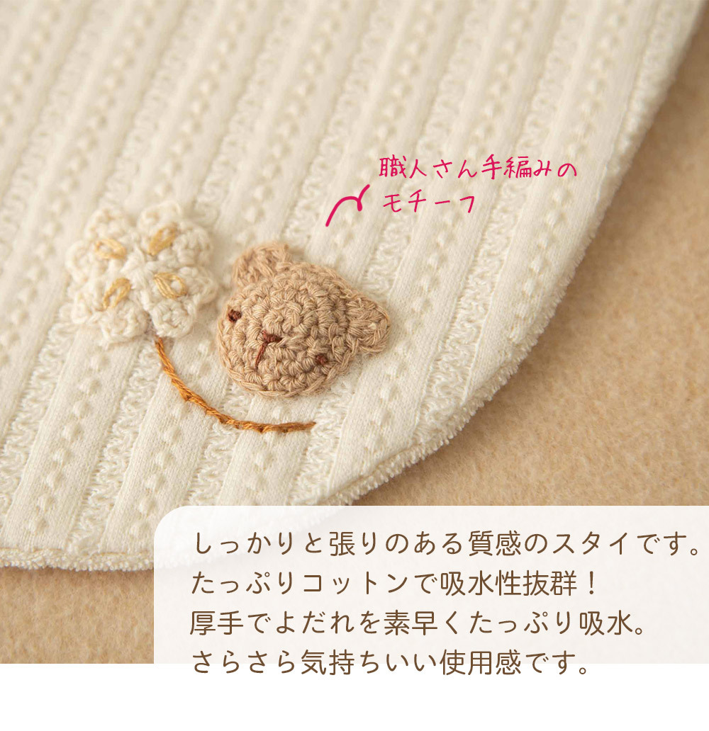 【日本製】オーガニックコットン100% ベビー スタイ ビブ レーシーニット 新生児 よだれかけ 手編みモチーフ Amorosa mamma アモローサマンマ