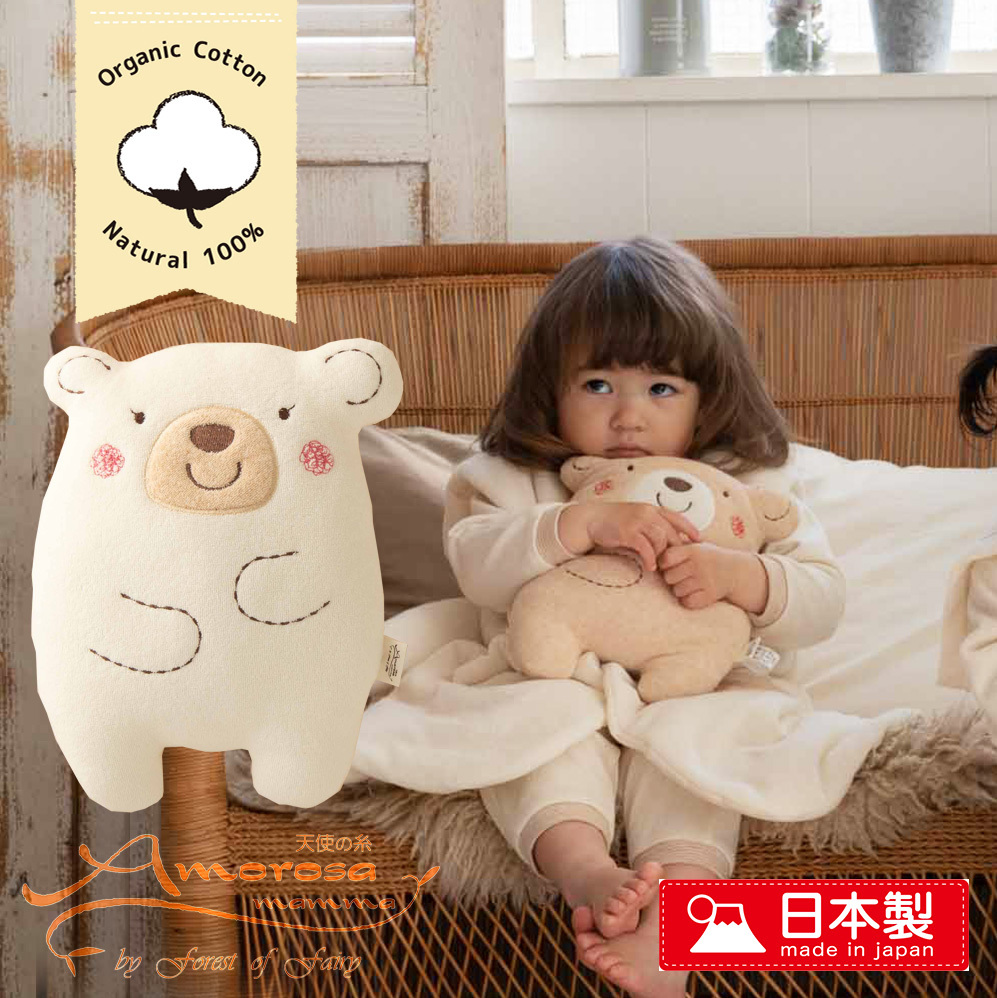 日本製 オーガニックコットン ゆるくまちゃん【サイズ L 】抱っこラトルにぎにぎ人形 鈴入り アモローサマンマ ベビー 新生児用 おもちゃ ぬいぐるみ