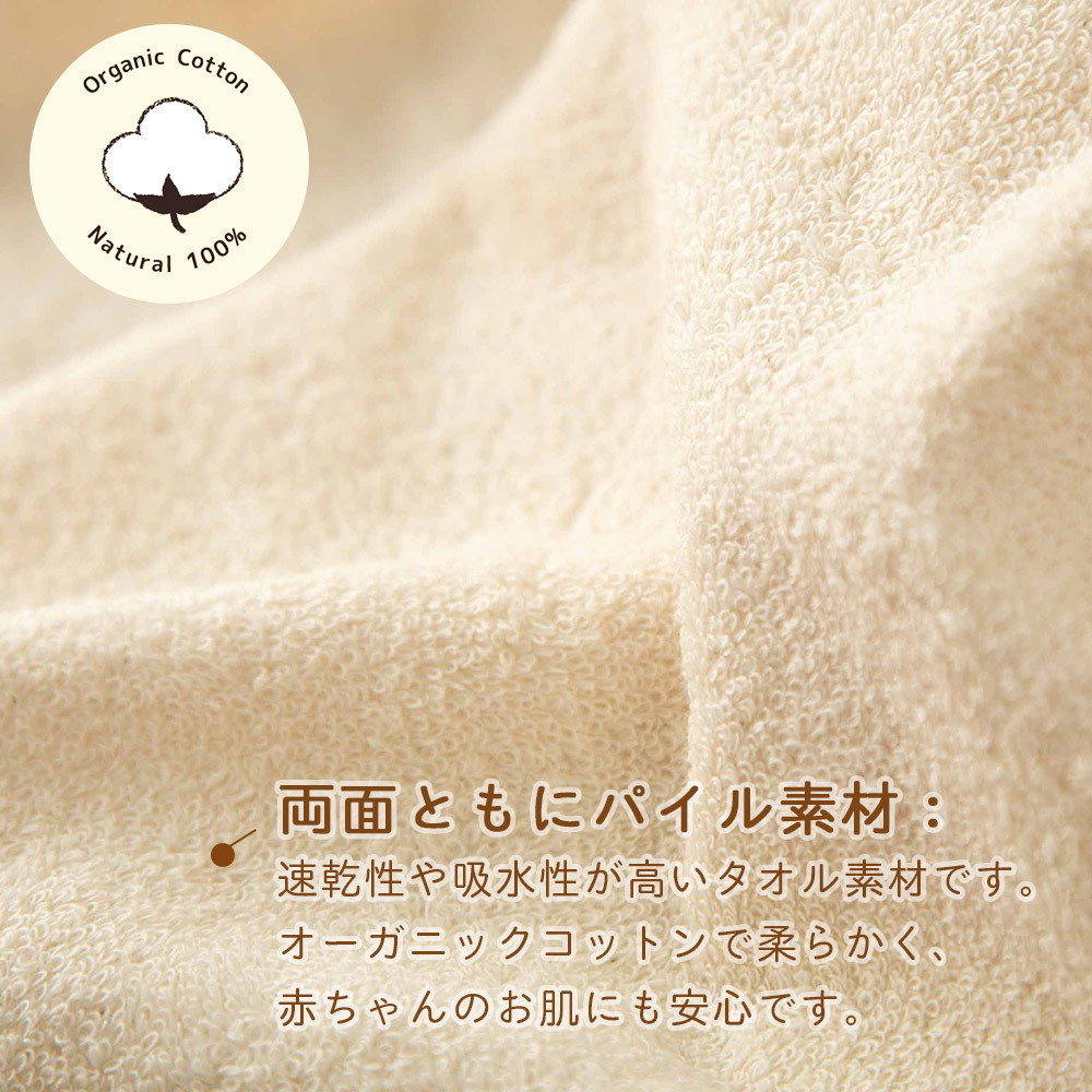 | 素材 | オーガニックコットン100% 肌触りやわらかパイル素材 |