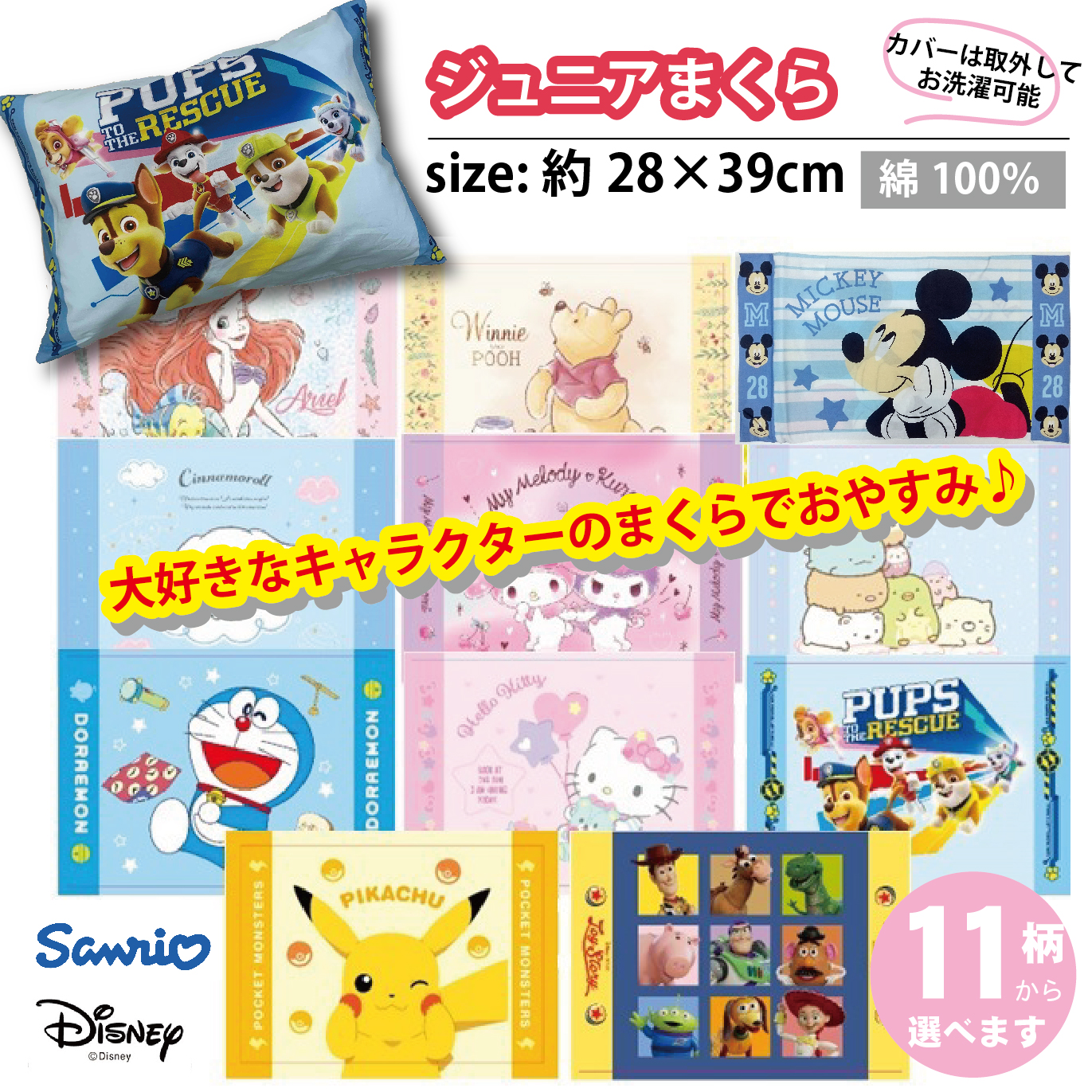 ジュニア 子供 用 枕 キャラクター 洗える ウォッシャブル 綿100% ピカチュー ドラえもん アリエル すみっコぐらしトイストーリー シ