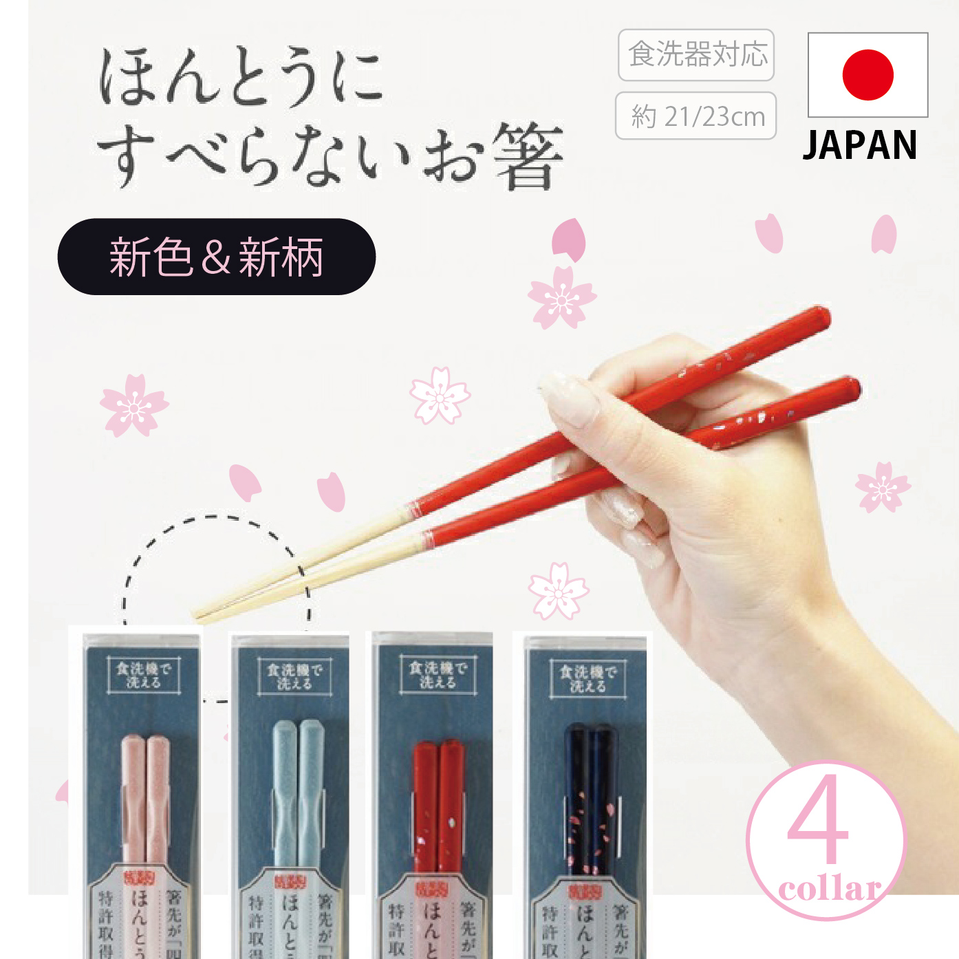 【TVで紹介されました】ほんとうにすべらないお箸 桜舞う ポタリー 21cm 23cm ギフト プレゼント 日本製 滑らない おはし 食洗機