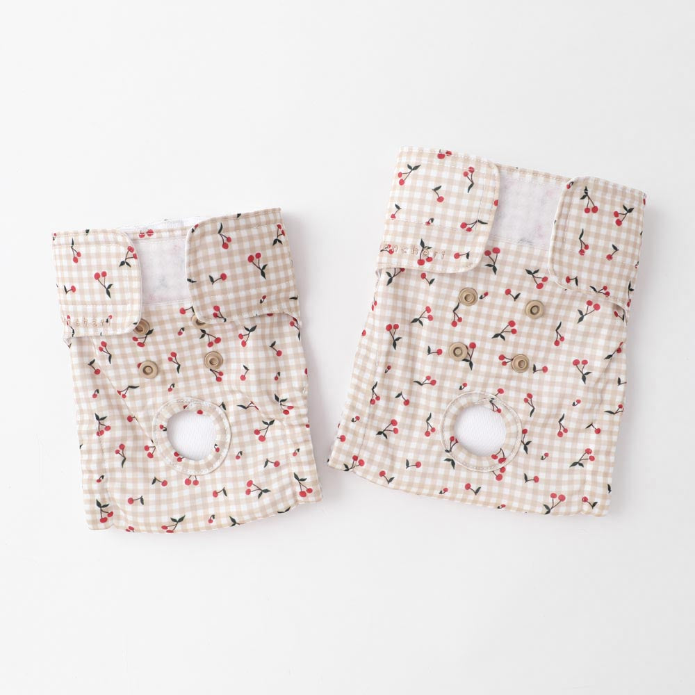 moncheriオリジナルテキスタイルのギンガムチェックチェリー柄のサニタリーパンツの登場です。