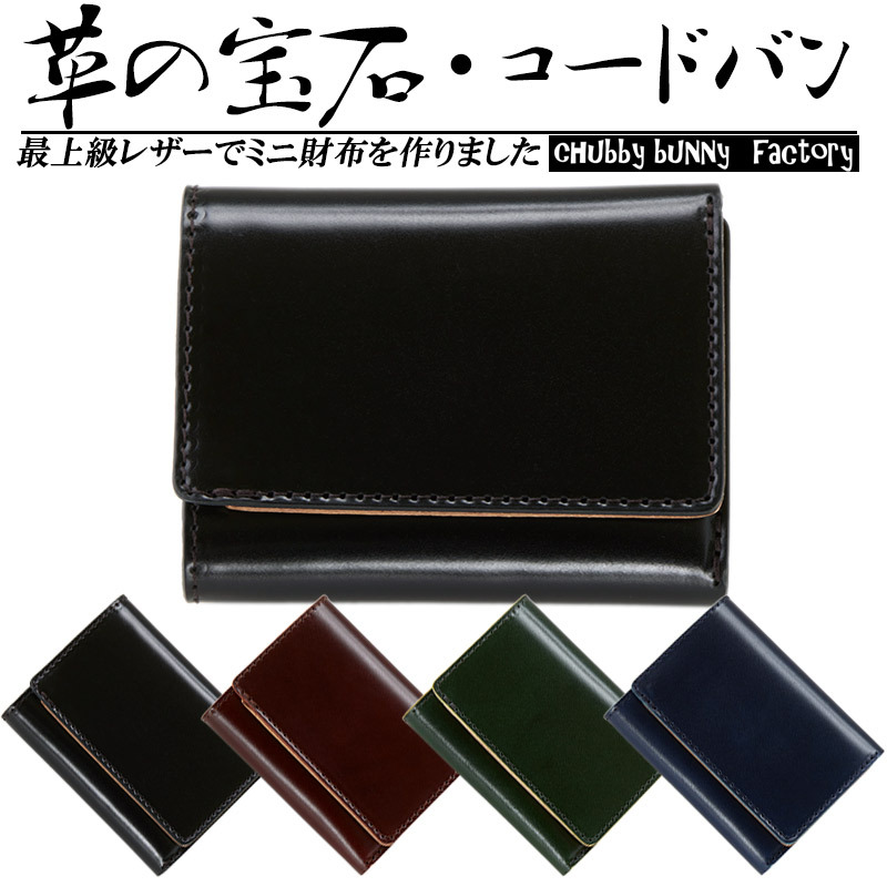 【冬の大感謝SALE10%OFF】ミニ財布 三つ折り コードバン CBF-113 本革 レディース メンズ hubby bunny factory