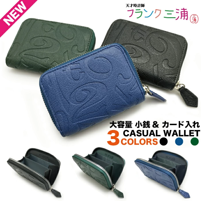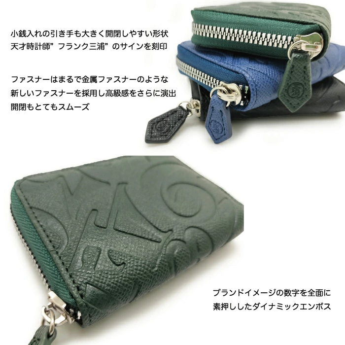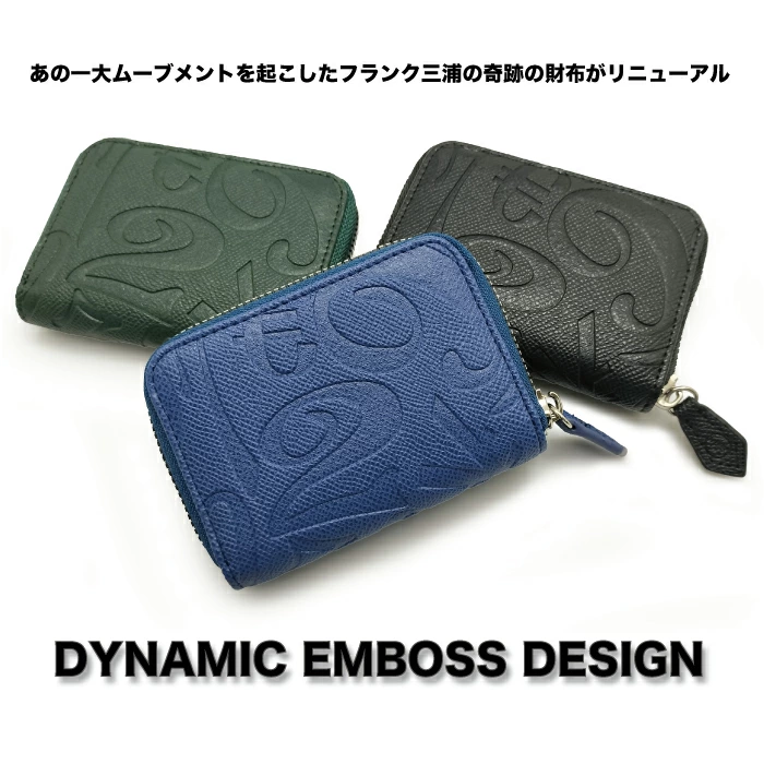 【冬の大感謝SALE10%OFF】フランク三浦 メンズ レディースラウンドファスナーカード&小銭入れ| エンボス型押し ウォレット ラウンドファスナー 爆買