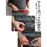着け外しやサイズの調節が簡単なローラーバックル式(いわゆるGIベルト、ガチャベルトのタイプ)を採用。