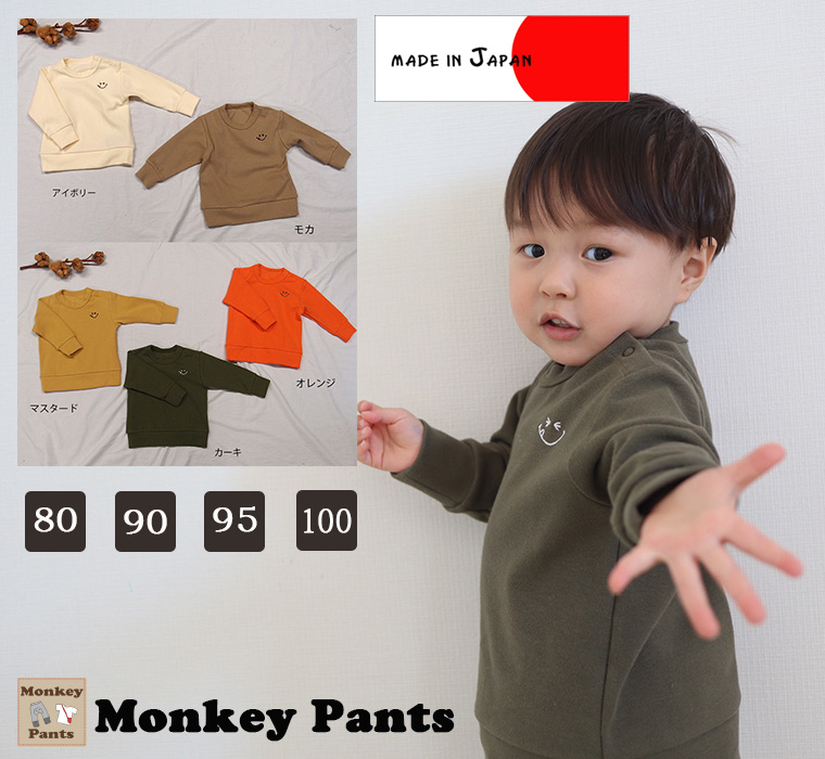 ベビー服 子供服 伸縮性抜群 小さいにこちゃん刺繍 トレーナー スパンフライス 日本製(80cm 90cm 95cm 100cm)2998メール便可30