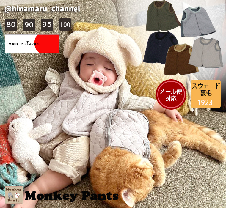ベストと同じ形で作ったキルトと裏毛のコンビベストです。