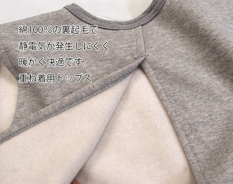 綿100%の裏起毛を使用したので、静電気も起きにくく快適な温もりを感じられます。