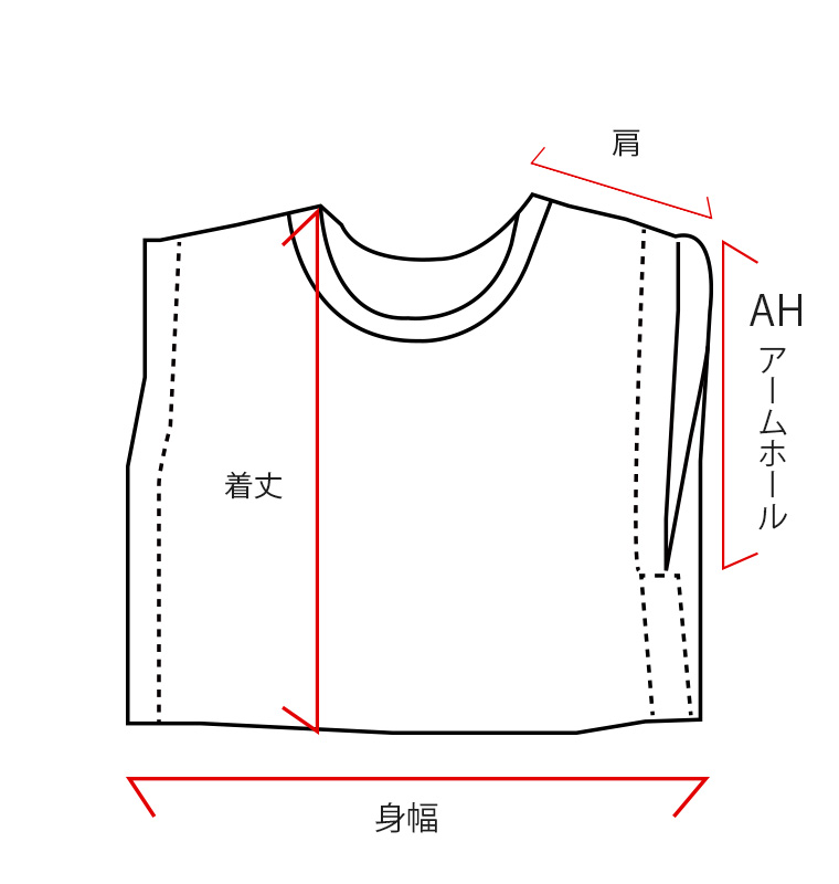 | | 着丈 | AH | 裾周り | 袖丈 | 肩 |