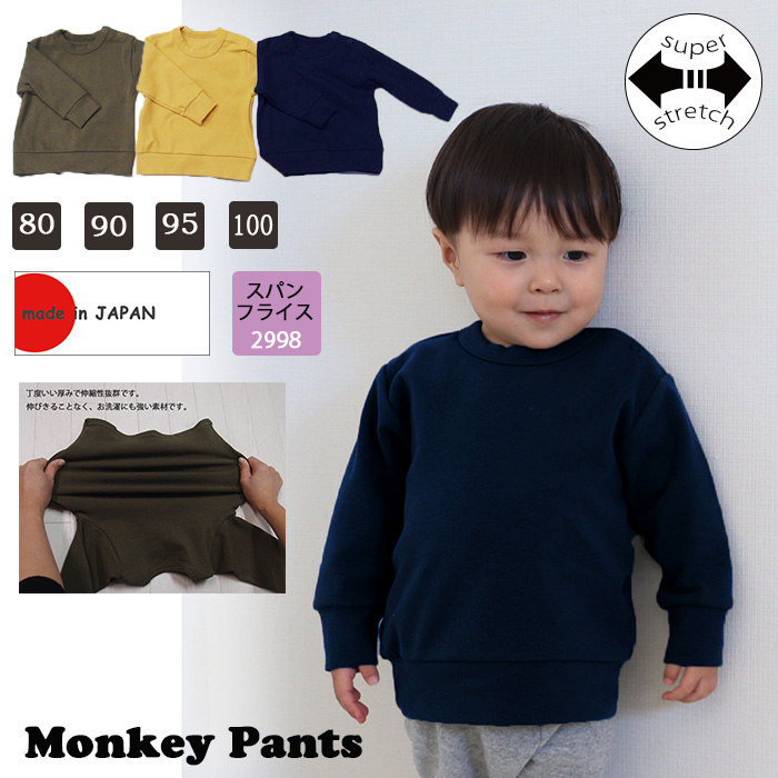 とても伸縮性のある素材、スパンフライス(生地NO.2998)を使用した無地トレーナー。