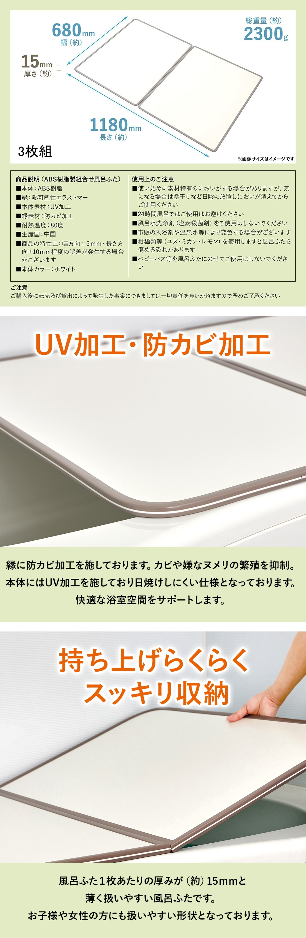 【商品説明 (ABS樹脂製組合せ風呂ふた)】