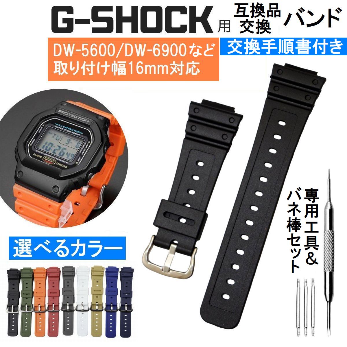 互換品 G-shock 腕時計 交換 ベルト 16mm バンド Gショック カシオ ジーショック 汎用 時計ベルト バネ棒 & バネ棒外し セット