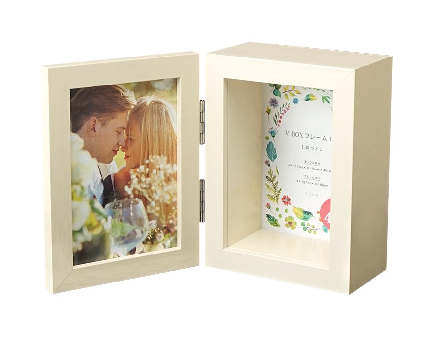 立体額 額縁 フォトフレーム おしゃれ CUBEフレーム コレクションボックス 深さ47mm 置き 卓上 おすすめ 万丈 V BOXフレーム L判ツイン ベージュ