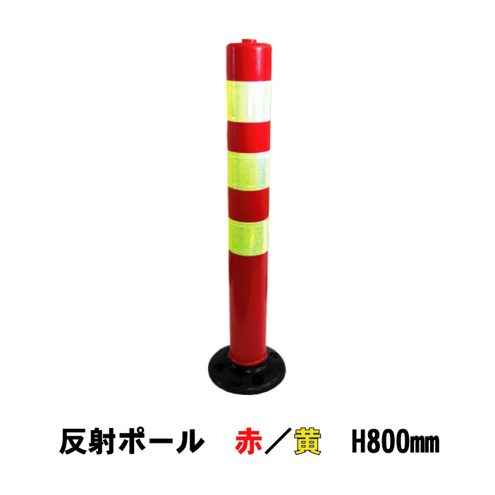 反射ポール 赤/黄 H800mm 1本 アンカーボルト・平ワッシャー付き 注意喚起 ポール 道路用品 視線誘導標 送料無料