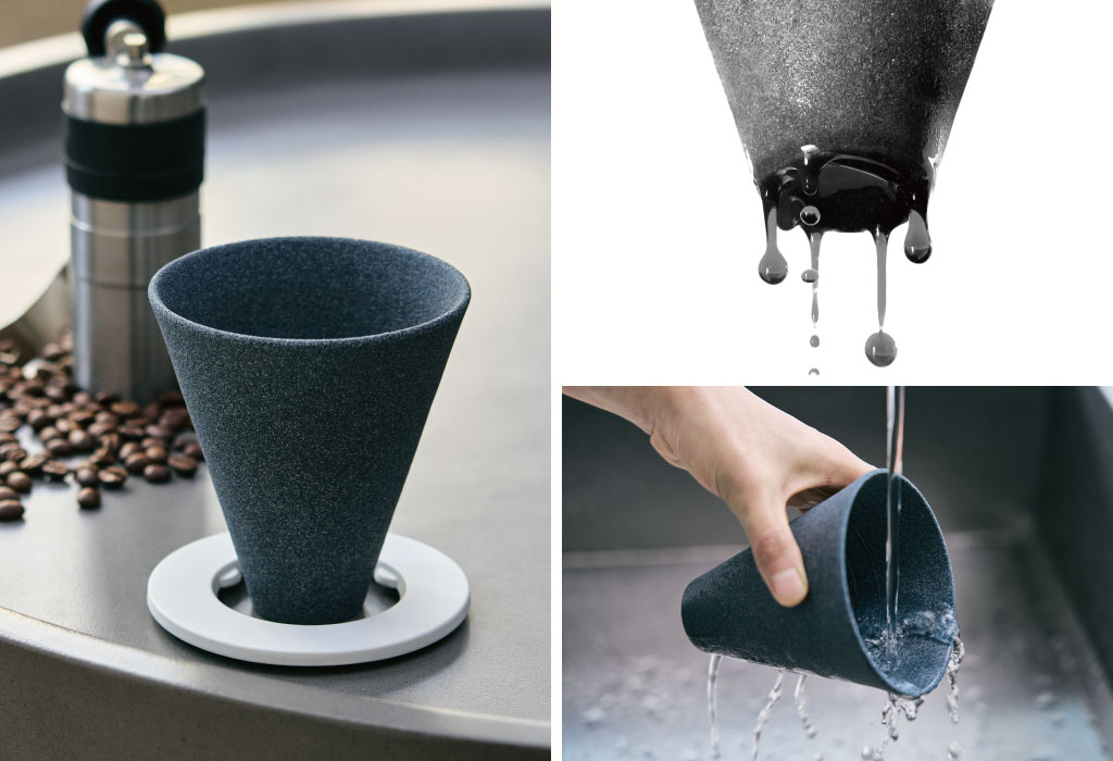 2024年3月下旬より、スタンド部分が仕様変更になりました。「磁器」から「樹脂と再生陶器」を使用した強度の高い素材へと変更。スタンドとフィルターやマグカップ、ガラスピッチャーに触れた際のカチャカチャ音も軽減され、更に快適にご使用いただけるようになっております。
