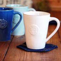 一番人気のアイテム、マグカップ。中央にロゴが入ったシンプルで上品なデザインです。持ち手が大きく、300mlとたっぷり入るので日常的にカジュアルに使っていただけます。色は、ホワイト、ターコイズ、デニム、グレー、エコグレスの5色からお選びいただけます。