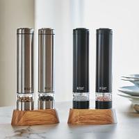 テーブルコーディネートに馴染むスタイリッシュなデザインとステンレス素材が置いておくだけでいつものキッチンやテーブルがおしゃれに。ハンディサイズの電動ミルなら女性にも持ちやすく、ミル上部のボタンを押すと、電動で挽くことができます。食材を混ぜたり炒めたりする手を休めずに使用することができます。粗いものから細かいものまで、好みに合わせた挽き方を自在に調節することができます。残量が一目でわかるよう、キャビンは透明になっています。また、広めの充填口により、塩や胡椒を楽に上手に入れることができます。グラインダー部に残る細かな胡椒や塩がテーブルなどに飛散しないよう、専用スタンドが付いています。ミルの転倒防止にもなります。 錆の心配がなく、岩塩にも使用できる丈夫なセラミック製の刃を採用。また、摩擦熱が生じにくいため、熱で飛びやすい胡椒の香りを保ちます。料理の最後の仕上げにも、食事中の一足しにも便利なアイテムです。