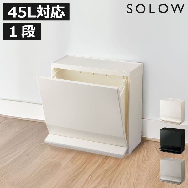 シンプルで機能性の高い「SOLOWシリーズ」の縦型ゴミ箱です。キッチンカウンターの横や壁際などにすっきり収まるスリムなデザイン。奥行き26.5cmと薄型なので、通路に置いても邪魔にならず、生活動線をしっかり確保します。縦型ゴミ箱1段あたりの容量は22.5L。45Lゴミ袋に対応しており、ゴミをたっぷり捨てられます。1台でゴミを分別することもできて便利です。足元のペダルでサッとゴミを捨てられるのも嬉しいポイント。縦型ゴミ箱は「1段」と「2段」からタイプをお選びいただけます。2段タイプの容量は合わせて45Lと大容量。2段タイプの上段は手動でスムーズに開閉できます。天板はフラットなので、ティッシュケースなど、ちょっとした小物を置けて便利です。縦型ゴミ箱にはキャスターが付いており、お掃除の時の移動も簡単にできます。抗菌・防汚加工が施されているので、縦型ゴミ箱としてだけでなく、収納ストッカーとして活用するのもおすすめです。