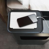 約20cmとコンパクトな横幅なんで、ベット横に置いても場所をとりません。便利な充電器コードホルダーがついています。スマートフォン、目ざまし時計、本など、ちょっとした小物を置くのに便利です。