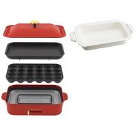 平面プレートとたこ焼きプレートの2種類のプレートが付属。本ページは、更に1種類のプレートがセットに。前菜からお鍋、デザートまで幅広く調理ができ、料理のレパートリーが広がります。
