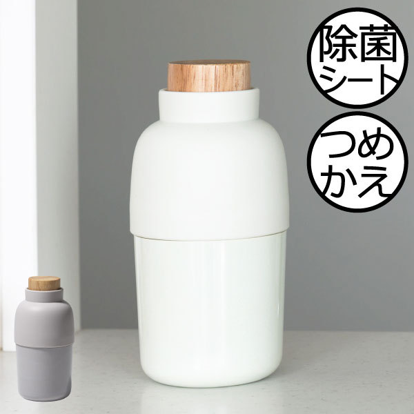 素朴で、飽きがこないシンプルなデザインが魅力なideaco(イデアコ)より縦型のウェットティッシュケースが登場しました。 お部屋の除菌や手をサッと拭くことができるウェットティッシュは、使用頻度の高い日用品、よく使うからこそおしゃれに収納したいと思っている方も多いと思います。 このモチビンには、普段お使いのウエット・アルコールティッシュ・除菌ティッシュなどの詰め替え用を入れることができ、 乾燥を防ぐ木製のフタがついています。また1枚ずつ引き出せるよう、取り出し口には、ジグザグのスリットが付いています。 シリコンとバンブーメラミン2種類の素材を組み合わせた本体は、落ち着きのある「サンドホワイト」、「グレー」2色のカラー展開です。 シンプルでおしゃれな本体は、リビング、寝室、サニタリー、化粧台、車内などどんな場所にも溶け込むデザイン、専用のボックスに入っているので、大切の方へのギフトにもおすすめです。
