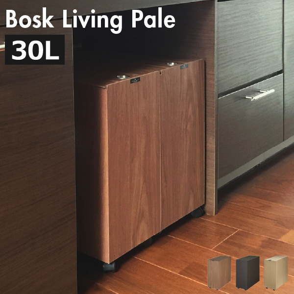 上質で機能的なゴミ箱をお探しの方にぴったり。シンプルで高級感のある木目調のゴミ箱、「バスク ペールシリーズ」です。まるでインテリアのようなおしゃれなデザインで、生活感を感じさせません。木製の家具や食器棚との相性もよく、どんなテイストのお部屋にも溶け込む上品なゴミ箱です。ゴミ箱の容量は30リットルと45リットルの2種類をご用意。どちらも45リットルゴミ袋に対応しており、ゴミをたっぷり捨てられます。30リットルは、リビングやデスクまわりにも置きやすいコンパクトなサイズ感。45リットルは、ファミリー世帯のキッチンやまとめてゴミを捨てたい方に最適です。ゴミ箱の幅は約21cmとスリムで、家具や家電の隙間にも設置できます。2台並べても省スペースなので、分別用として2台使うのもおすすめです。ゴミ箱のフタはスライド式で、指一本でスムーズに開閉できます。フタを開けたときに高さが出ないので、キッチンカウンター下やパントリー下にもぴったり。キャスター付きのゴミ箱だから、お掃除やゴミ出しの際の移動も楽にできます。袋止めが付いているので、ゴミ袋もしっかり固定できて安心。袋止めの切り込みを使えば、1台で2分別も可能です。ゴミ箱の表面はウレタン塗装で仕上げています。木目の美しさを保ちながら耐久性を高め、お手入れもしやすくなっています。おしゃれなデザインと使いやすさを両立した、長く愛用できるゴミ箱です。