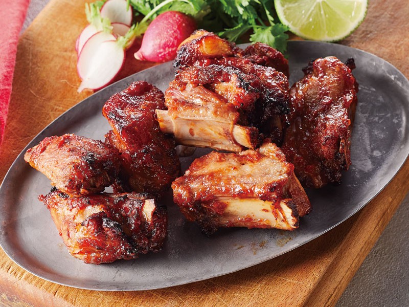 エアーオーブンは揚げ物だけでなく、オーブン調理にも優れています。200℃の予熱が約5分とあっという間。揚げ物、ロースト、グリル、ベイク、温め直しと、5つの多彩な調理ができ、様々なメニューが作れます。画像のように、下味に漬け込んだ食材も、短時間でジューシーに焼き上げます。