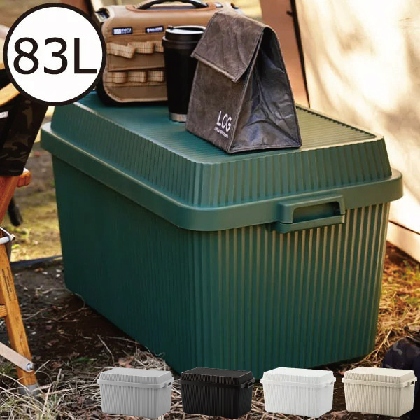 屋外でも屋内でも使用できる大容量のふた付き収納ボックスです。収納ボックス全体に、細かな面をジグザグに連結させた構造体を採用し、耐久性と容量を両立させたデザインとなっています。屋外はもちろん、屋内のインテリアにも馴染むカラーリングとシンプルさが魅力的です。収納ボックスは53(浅型)と83(深型)の2タイプ。用途や収納量に合わせてお好みの容量をお選びいただけます。頑丈なふた付きの収納ボックスなので、収納や運搬はもちろん、ふたの上に荷物を置いたり、イスとしても活用でき、屋外の様々な場面で活躍します。収納ボックスは最大3段までスタッキングが可能。スパイクの凹凸のような構造で安定感を高めています。収納ボックスの耐荷重は約100kg。衝撃に強い樹脂製なので、車のトランクや屋外でもタフに使用できます。ハンドル付きで持ち運びやすく、ふたはロックできるので防水性にも優れています。別売りのインナーボックスを使えば、大容量の収納ボックス内を仕切りながらわかりやすく整理できます。アウトドア用品の収納からご自宅の消耗品、防災用品、おもちゃまで、様々なアイテムの収納におすすめです。