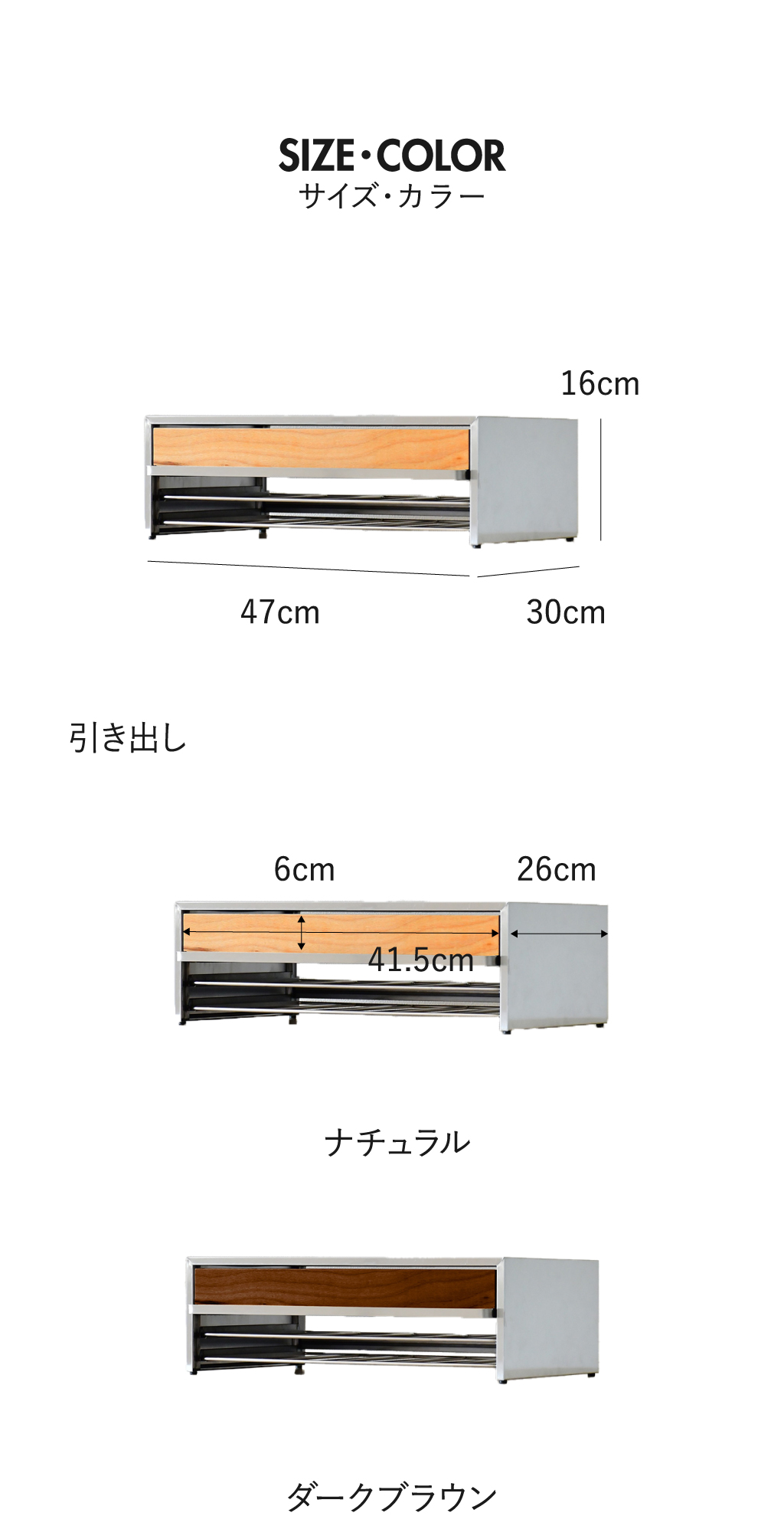 引き出し:約幅41.5cm×奥行き26cm×高さ6cm