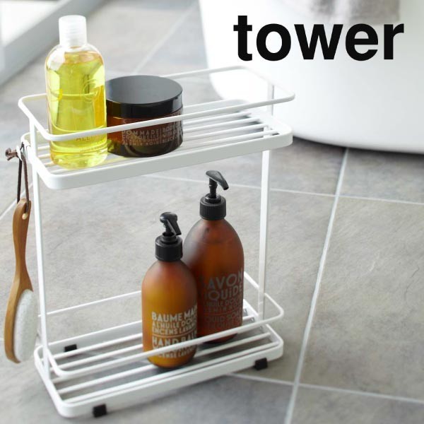 バスラック 2段 スリム 収納 山崎実業 ディスペンサースタンド タワー ワイド tower