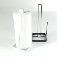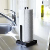 スマートに収納できる、シンプルなキッチンペーパーホルダーです。上から挿すだけで手軽に収納することができて、取り替えも簡単。しっかりとした重みがあり、さっとスムーズに手に取ることができます。サイドにあるバーがペーパーを抑え、広がらずにまとまるのも◎。コンパクトに収まる縦置きタイプで、使いやすい場所に置けます。使い終わって片付ける時も、さっと移動させることができます。キッチンカウンターに直接つかない設計で、いつも衛生的。耐久性に優れたスチール製だから、水やキズに強く、長く使えます。水回りで使ってもサビにくいのは嬉しいポイントですね。色は、ホワイトとブラックの2色からお選びいただけます。