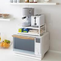 レンジ上の空間を活かして手軽に収納スペースを増やせる、シンプルなレンジ上ラックです。デッドスペースになりがちなレンジ上の空間を活かして、トースターや電気ケトルなどの家電や、ラップやふきんなどのキッチン雑貨をすっきり収納できます。