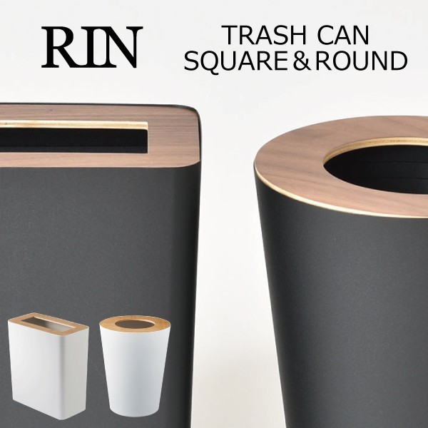 ゴミ箱 おしゃれ 山崎実業 トラッシュカン RIN リン ダストボックス リビング スリム 袋が見えない 蓋付き 木製 木目調 丸形 角型