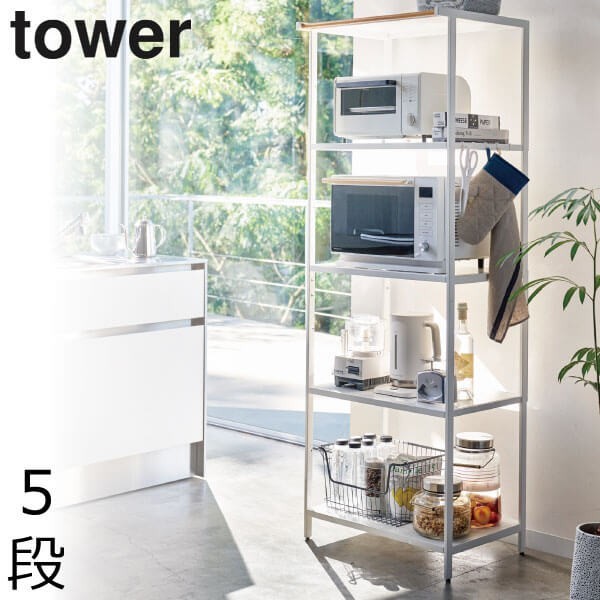 レンジ台 約幅60cm 食器棚 収納 キッチンラック 5段 タワー tower