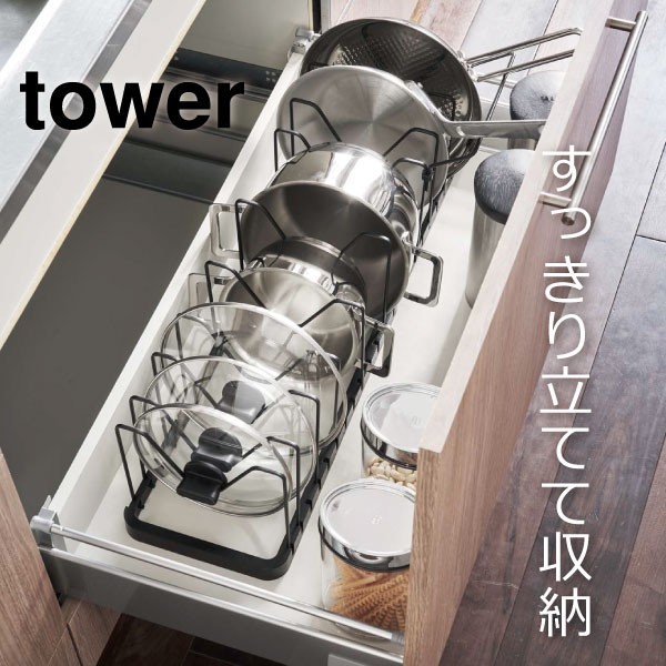 人気の「tower(タワー)」シリーズのシンク下フライパン&鍋蓋スタンド。
