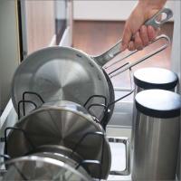 積み重ねて収納しがちなフライパンや鍋を立てて収納することで、出し入れがラクになり、使いたいサイズも一目でわかるので、お料理を気持ちよくスタートできます。