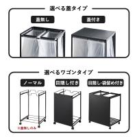 1台で2・3分別ができる、ワゴンタイプの分別ゴミ袋ホルダーです。従来の分別ゴミ袋ホルダーでは複数並べてゴミ捨てをしていただいていましたが、分別ダストワゴンでは、全てのゴミが1台に。瓶・缶・ペットボトル・プラスチックなどの資源ごみを分別するのにぴったりです。ゴミ箱のフレームにゴミ袋を掛けるだけのシンプルな構造なので、ゴミ袋いっぱいにゴミが入るのも嬉しいポイント。分別ゴミ袋ホルダーなのにキャスター付き。お掃除や袋交換の時も持ち手を使ってスムーズに動かせます。ゴミ袋の交換もフレームから手前にゴミ袋を引き抜くだけでサッとできます。ゴミ箱底面にゴミ袋のストックを収納するのもおすすめです。本体は丈夫なスチール製。組み立ててからご使用ください。45Lゴミ袋に対応している大型タイプや、ゴミ箱の前面に目隠しボードが付いているタイプなど、お好みの1台をお選びください。